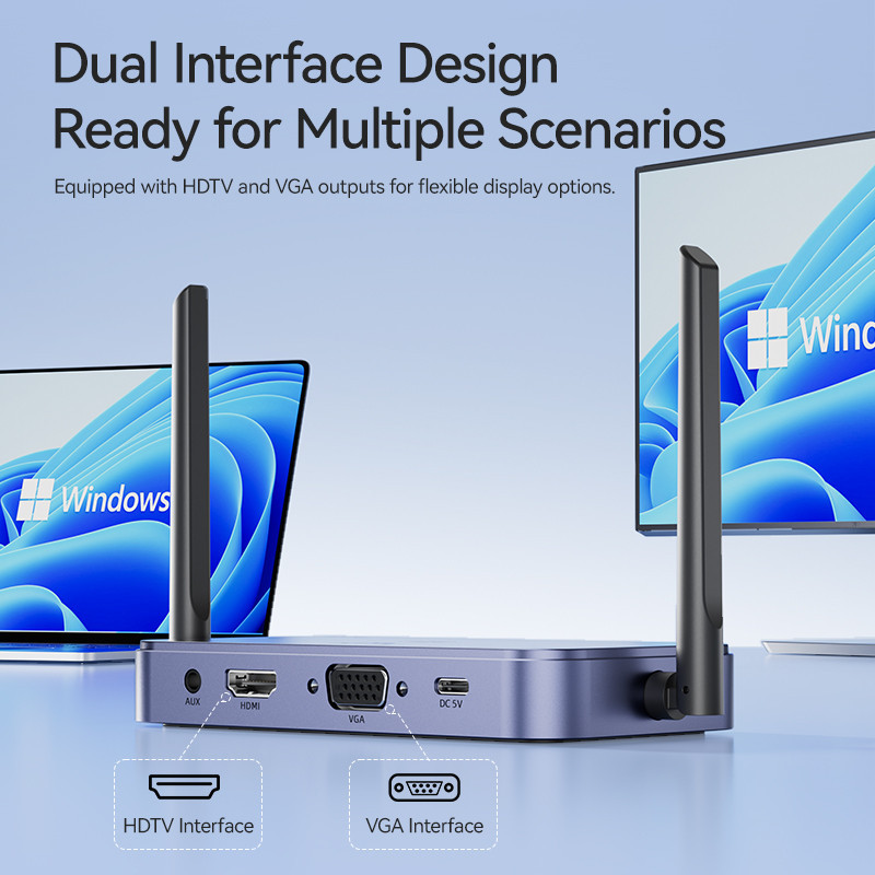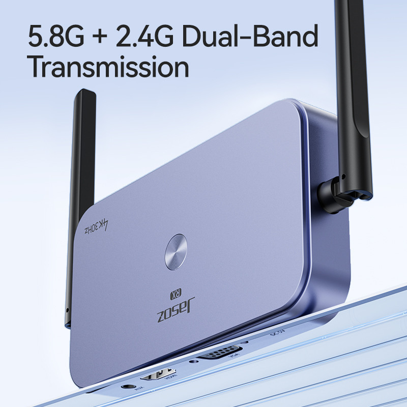 Bộ HDMI không dây jasoz G145 chuẩn Enterprise hỗ trợ độ phân giải 4K/30Hz, kết nối cùng lúc 8 thiết bị, truyền tín hiệu ổn định qua WiFi 2.4G/5G. Tích hợp xoay màn hình, xuất HDMI + VGA + AUX, phạm vi lên đến 50m.