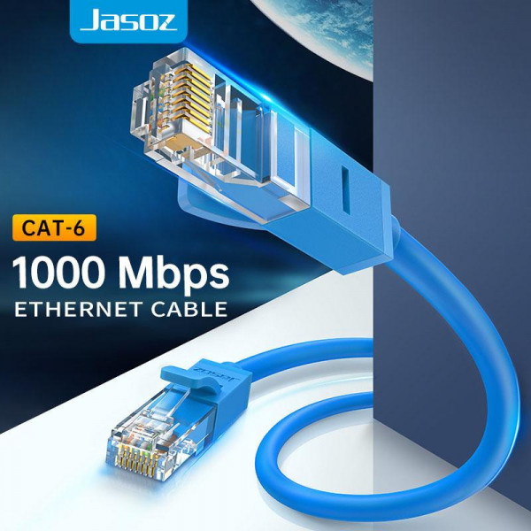 Cáp mạng LAN CAT6 JASOZ hỗ trợ tốc độ Gigabit 1000Mbps, lõi CCA UTP, đầu RJ45 mạ vàng 1u cho tín hiệu ổn định. Phù hợp kết nối máy tính, laptop, PC, TV Box, Tivi. Có sẵn nhiều độ dài 10m, 15m, 20m, 30m. 2 đầu được đúc sẵn từ nhà máy sản xuất