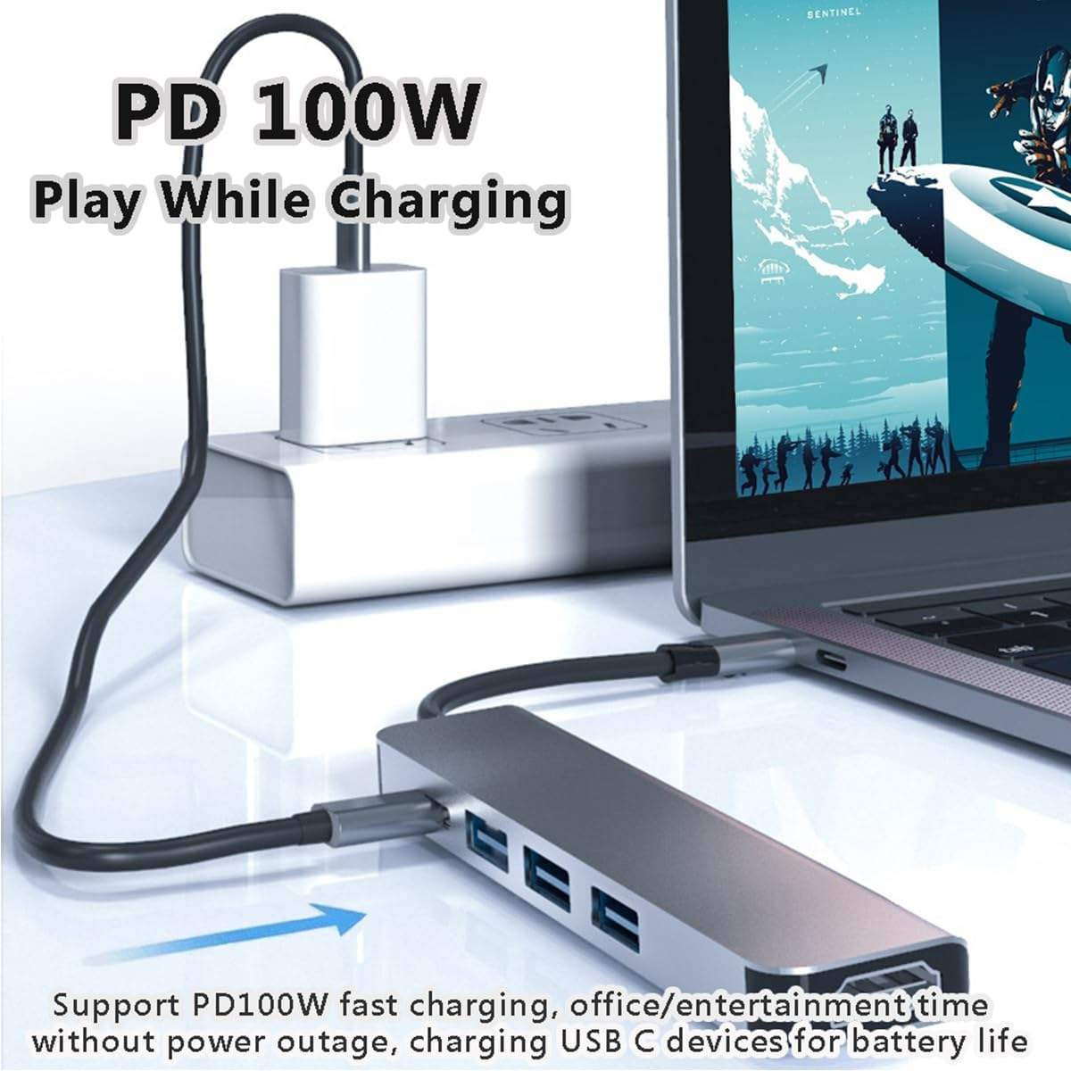 Hub hỗ trợ USB-C Power Delivery (PD2.0) với công suất sạc lên đến 100W, giúp vừa sử dụng hub vừa sạc laptop hoặc thiết bị tương thích.