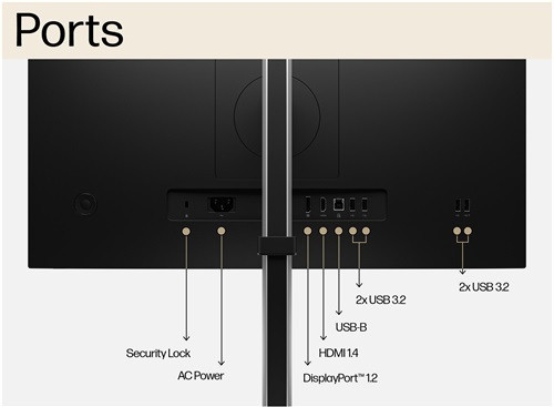 Phụ kiện: Cáp DisplayPort™, Cáp HDMI, Cáp USB Type-A sang B, Dây nguồn AC