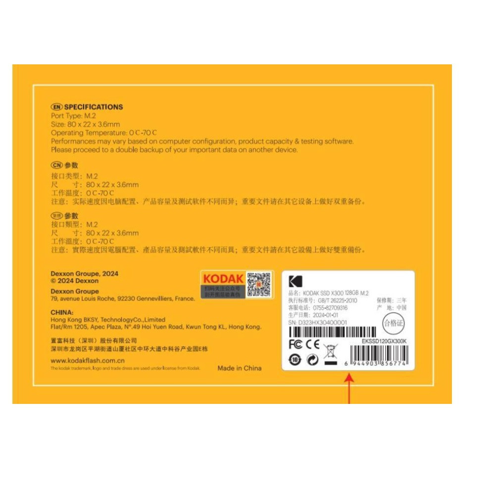 Ổ cứng SSD M.2 SATA KODAK X300 chuẩn SATA 3.0 6Gb/s mang đến tốc độ đọc lên đến 550MB/s, giúp tăng tốc khởi động hệ điều hành, mở ứng dụng và truyền dữ liệu nhanh hơn cho laptop và máy tính để bàn.