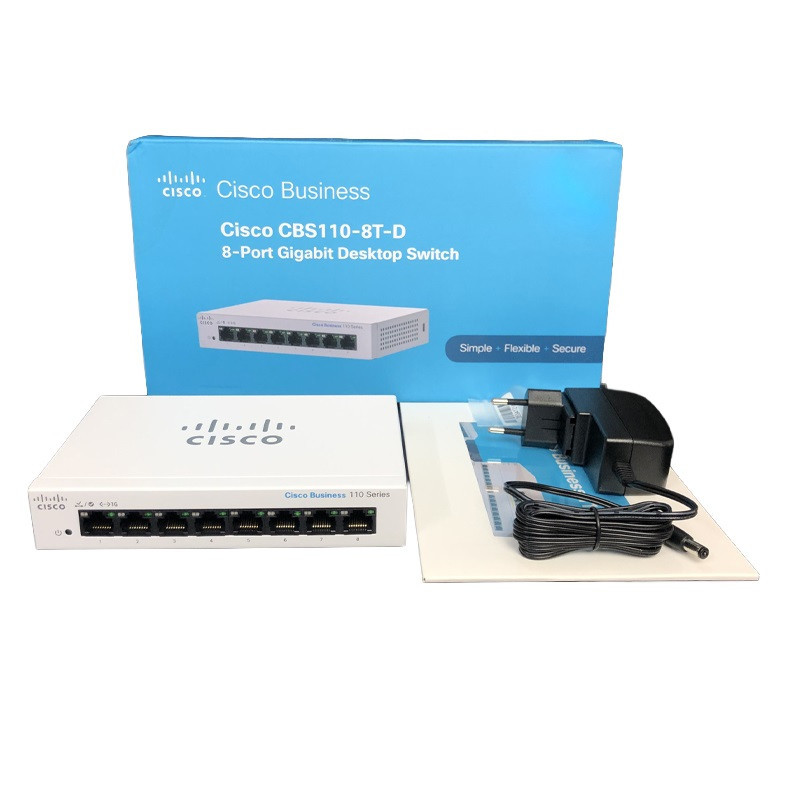 Cisco CBS110-8T-D-EU là switch unmanaged, không yêu cầu cài đặt hay cấu hình. Người dùng chỉ cần kết nối dây mạng là có thể sử dụng ngay, phù hợp cho người không chuyên hoặc hệ thống đơn giản.