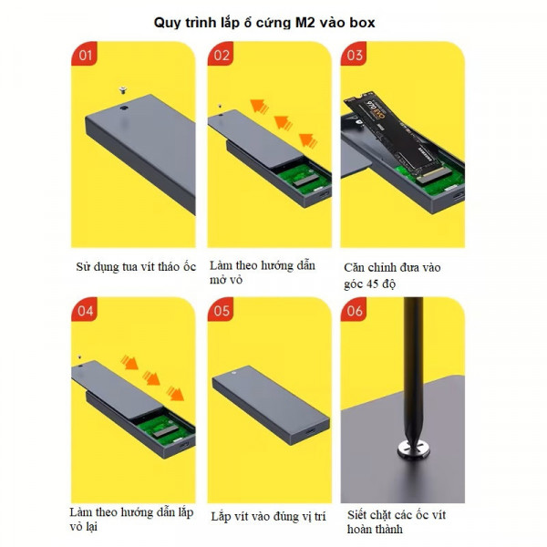 Vỏ SSD gắn ngoài M.2 NVMe Type-C 10Gbps, vỏ kim loại tản nhiệt tốt, hỗ trợ ổ cứng đến 4TB. Cắm là chạy, tương thích Windows, macOS, Linux.